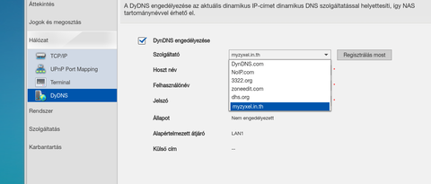 Ez valóban van, de soha nem sikerült működésre bírni. Ráadásul ha jól emlékszem "zyxel-es" címről volt szó, nem pedig "myzyxel.in.th"katyvaszról. A regisztráció során az én gépem sorozatszáma nem is létezik. Ezzel szemben a MyzyxelCloud felhő szolgáltatásában ott a DDNS beállítás. Ott ad egy xxx.zyxel.me címet, ami azonnal működik. -