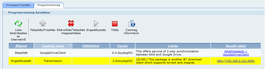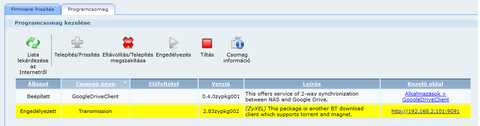 Package: GoogleDriveClientVersion: 0.4.0zypkg001Description: This offers service of 2-way synchronization between NAS and Google Drive.Depends:Size: 1261549Installed-Size: 2014981Architecture: armZy-Model:IsBuiltin: YTreeLocation: Applications:GoogleDriveClientZyURL: GoogleDriveClient/apps_google_drive.htmlFilename: GoogleDriveClient_0.4.0_arm_001.zpkgTransmissionból szégyen ezt a régit használni, de csatolom...: [link]