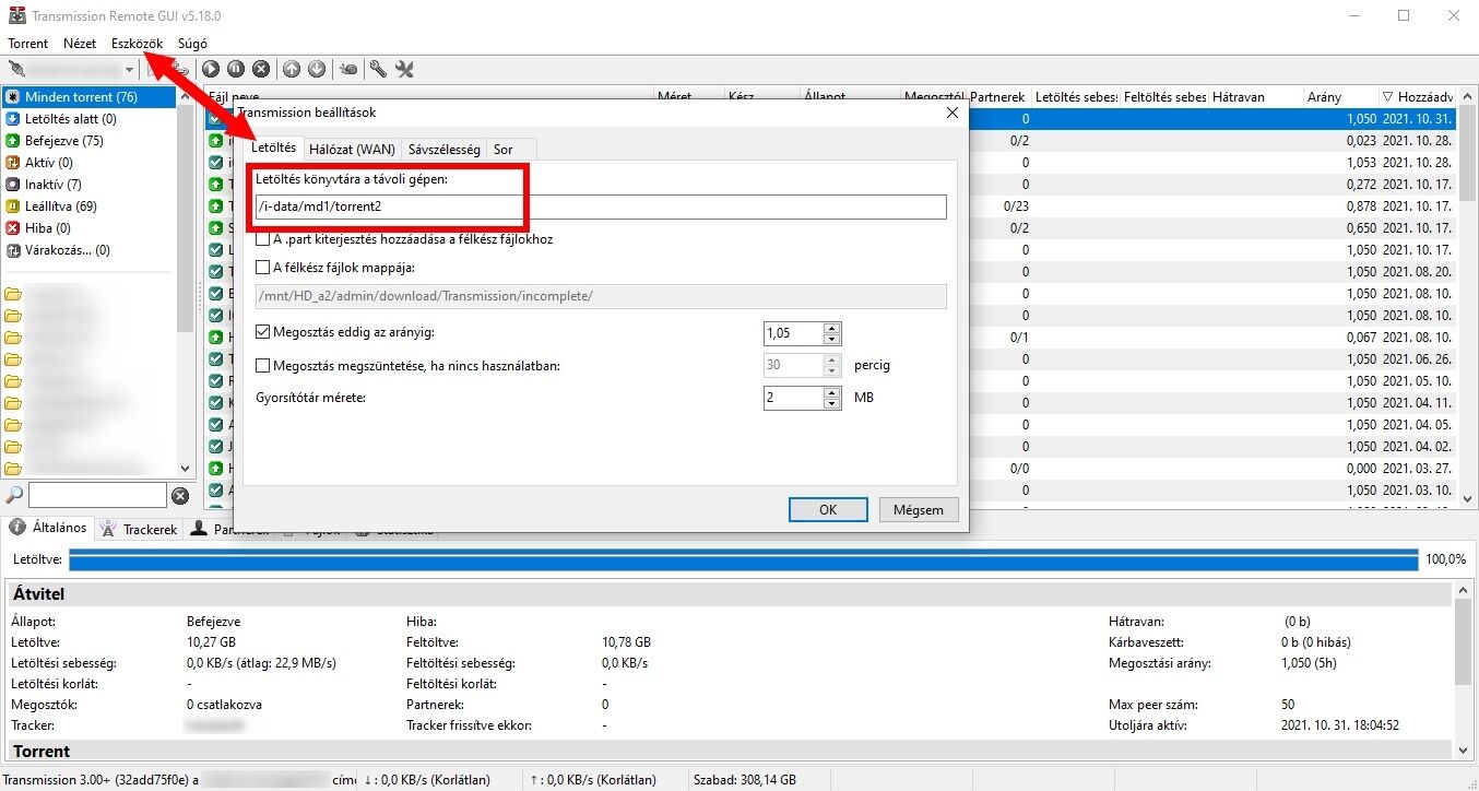 Tisztázzuk, hogy a Transmission webes felületéről (abból is melyik, eredeti vagy culturist féle) beszélünk vagy Transmission Remote GUI ?